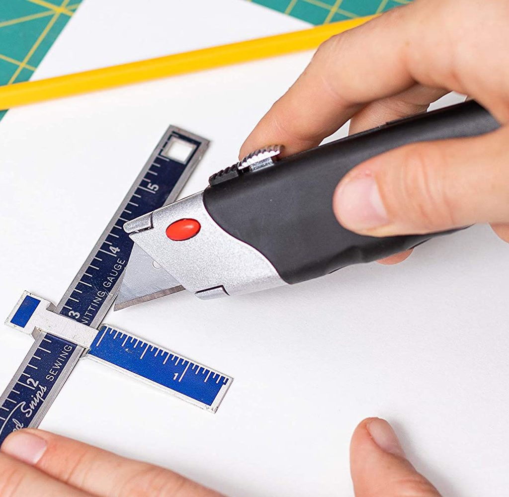 This utility knife set comes in a two-pack with five additional blades, which is a great deal at this price. It’s also made from heavy-duty metal and has a rubber grip for easier work. The quick-release mechanism makes it easy to replace the blades.