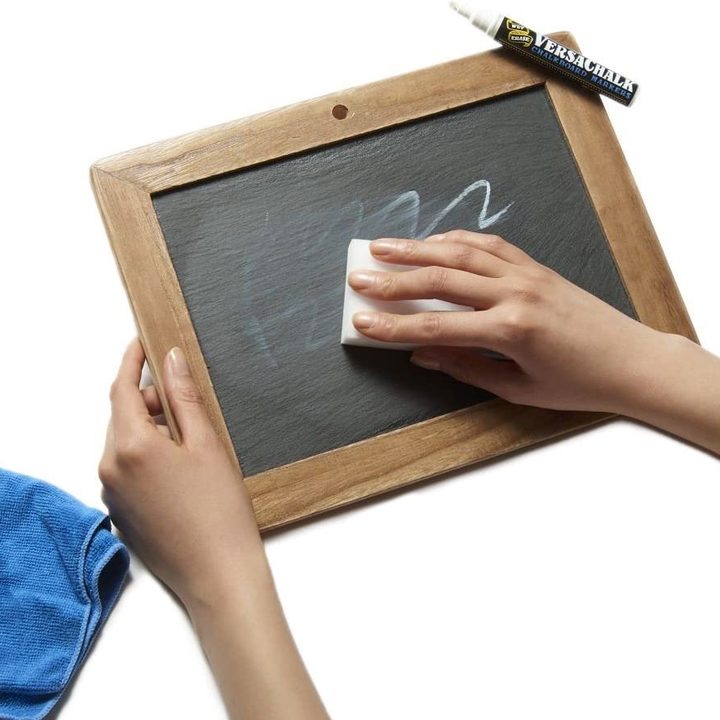 The best chalkboard erasers help preserve your chalkboard and keep your workspace neat. The VersaChalk cleaner kit includes a spray solution, two foam erasers, and a microfiber cloth. To use, spray the area with the solution and wipe down the cloth. Any leftover marks or stains will come off with the magic foam erasers. Fortunately, this solution also works on ink stains on different surfaces.