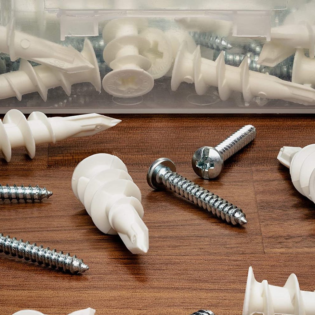 Qualihome’s set includes self-drilling screws and drywall anchors. The hard plastic anchors and included coarse-thread screws are best for 0.5-inch thick drywall and for hanging wall-mounted home decor like electrical fixtures, shelves, or picture frames.