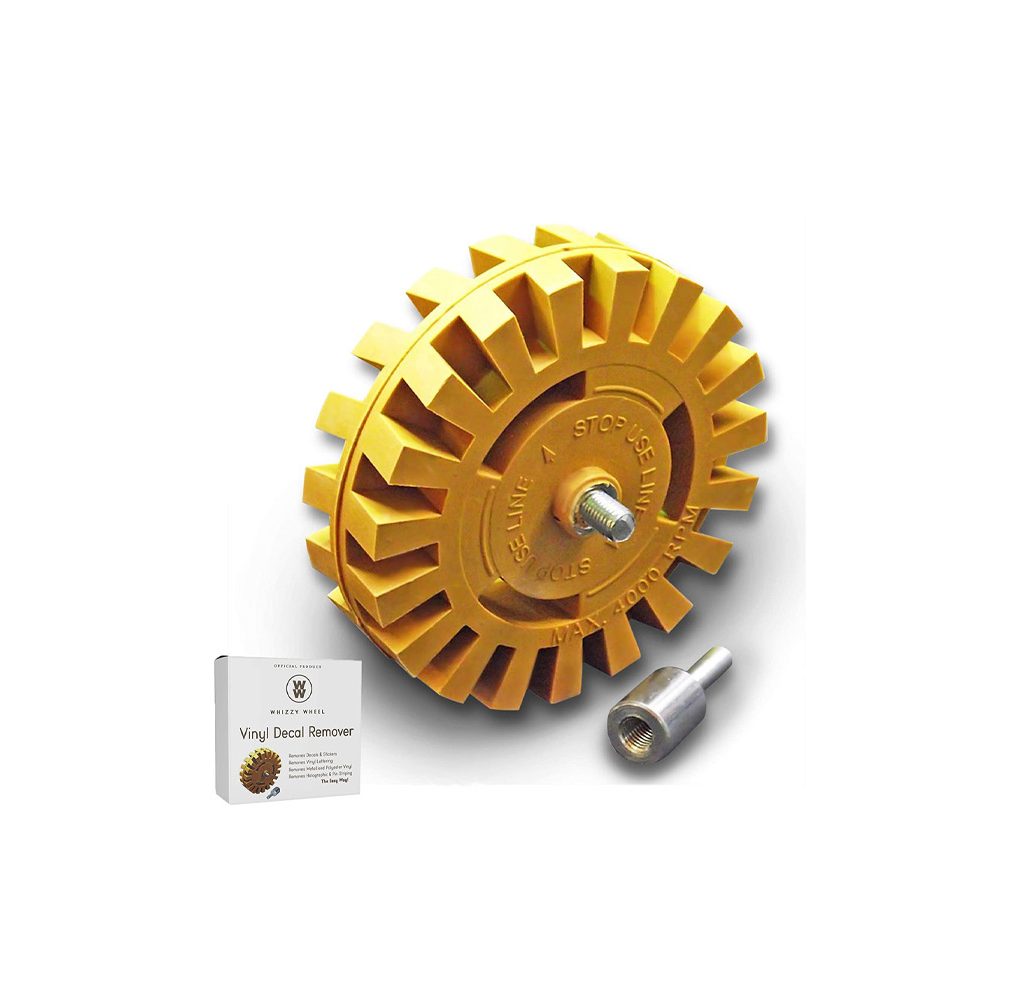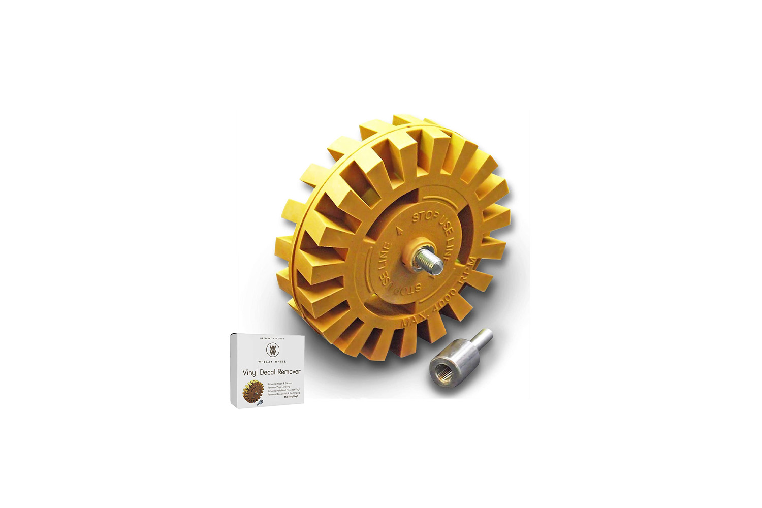 The unique shape of the Whizzy Wheel Decal and Sticker Remover is textured to allow for maximum buffering capacity. It can efficiently remove even cracked or sunbaked pinstriping and vinyl stickers. However, this eraser wheel is not suitable for plastic or painted aluminum surfaces. The Whizzy Wheel Decal and Sticker Remover is lightweight for ease of use, and it can eliminate persistent adhesives in seconds.