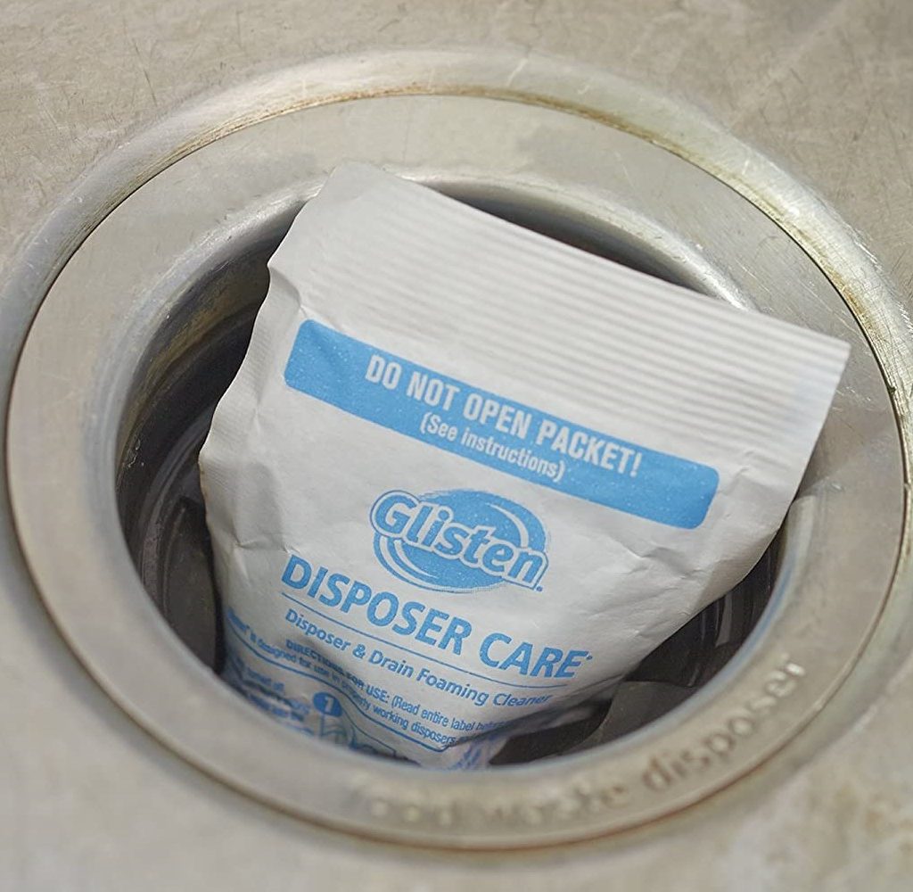 When you’re dealing with a foul garbage disposal, reach for a cleaner that’s highly effective. That describes the Glisten Garbage Disposer Foaming Cleaner, a solid overall option designed to deodorize and clean disposals better than most home remedies and other products. The lemon-scented garbage disposal foaming cleaner with bleach alternative comes in two pouches, each of which provides four uses. It’s safe both for drains and disposals.