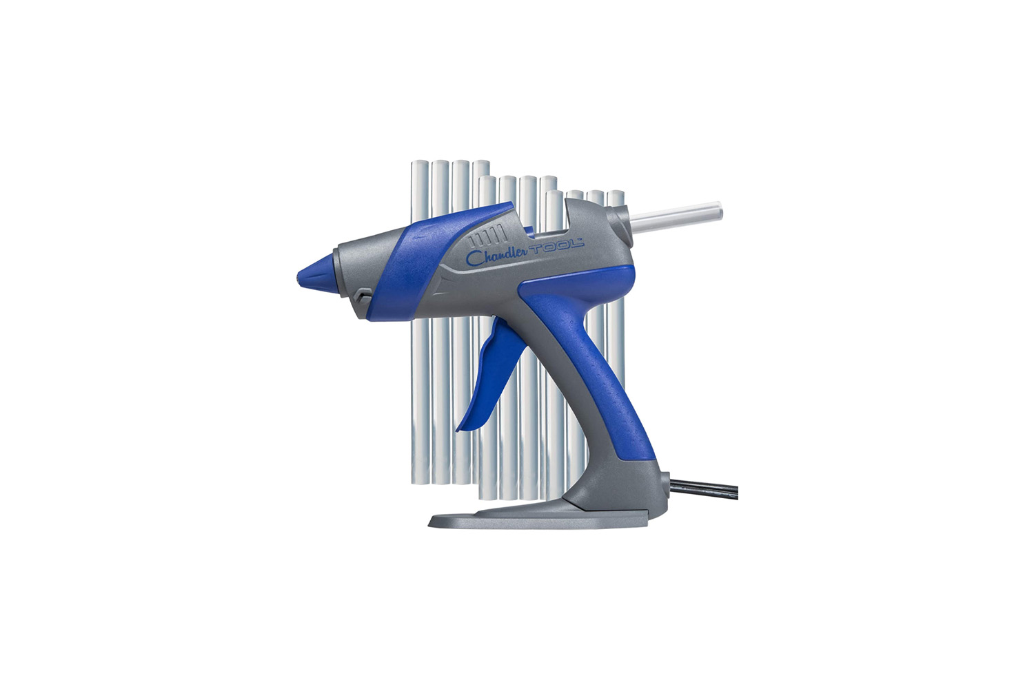 The Chandler Tool hot glue gun is a great overall choice. The best thing about it is its stand-up base, which stops the gun from falling over. Its design also helps avoid glue drips between uses and meets all UL standards.