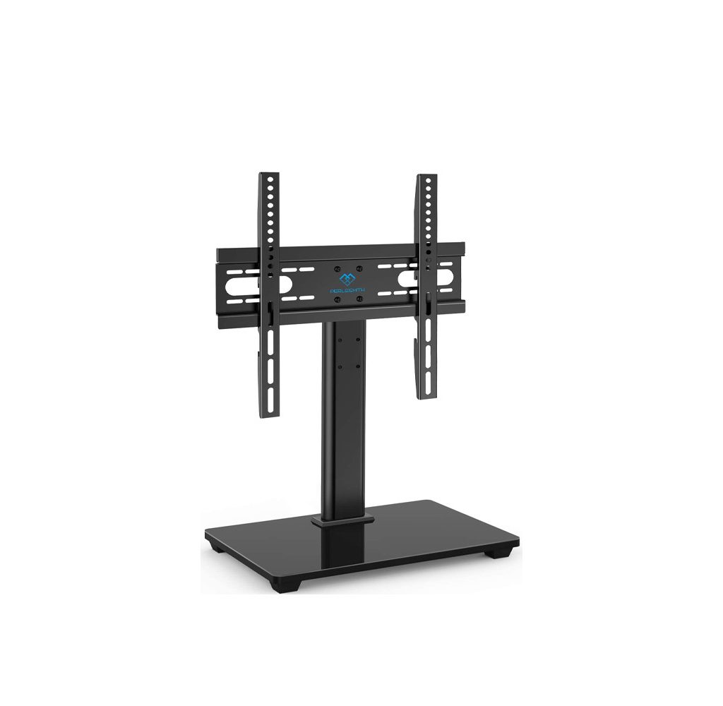 The Perlesmith Universal TV Stand is great for when you need a sturdy TV stand to keep your TV lifted up to a certain height. This metal industrial TV stand can be placed on top of any existing stands or tables to support your TV with the appropriate amount of strength. The height of this TV stand is adjustable, so you can get it right at your eyeline for easy watching. The mounting bracket is easy to work with and install for your television, so you can kick back with your favorite shows.