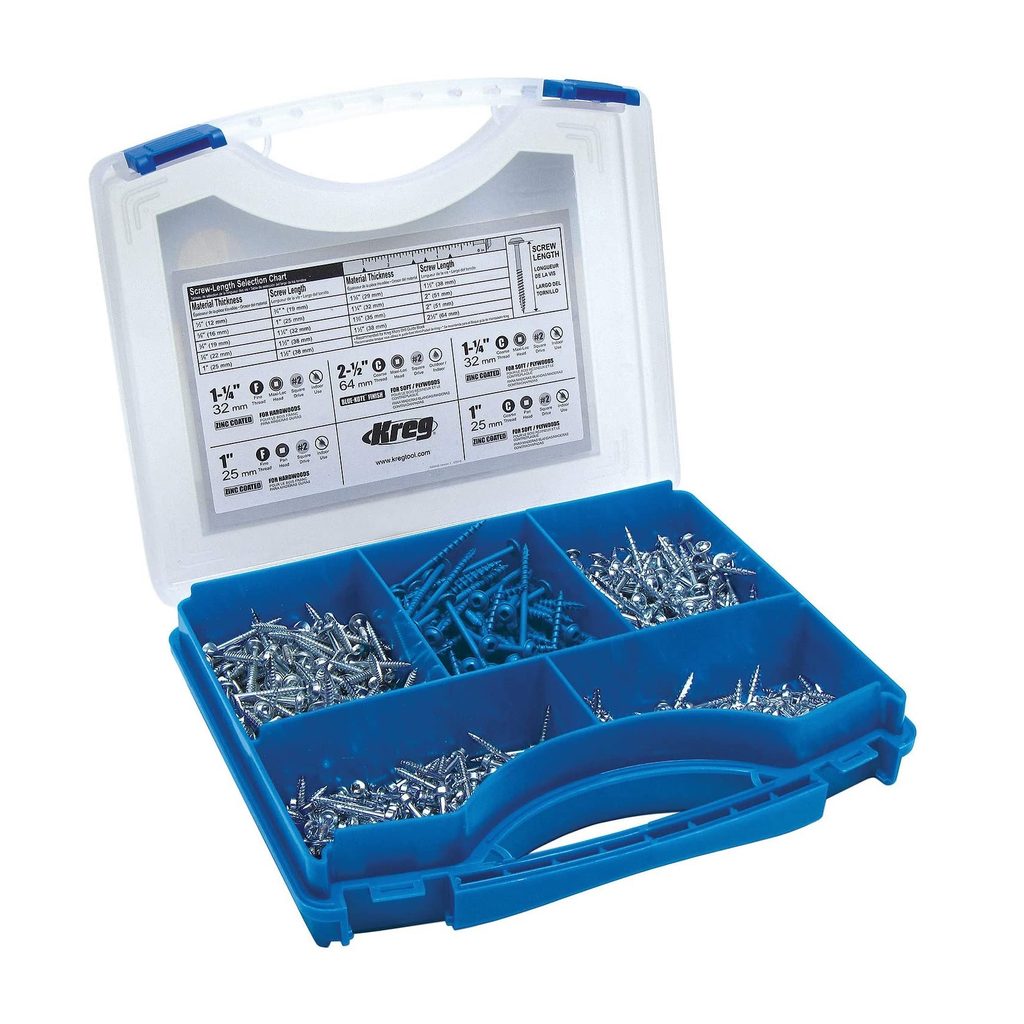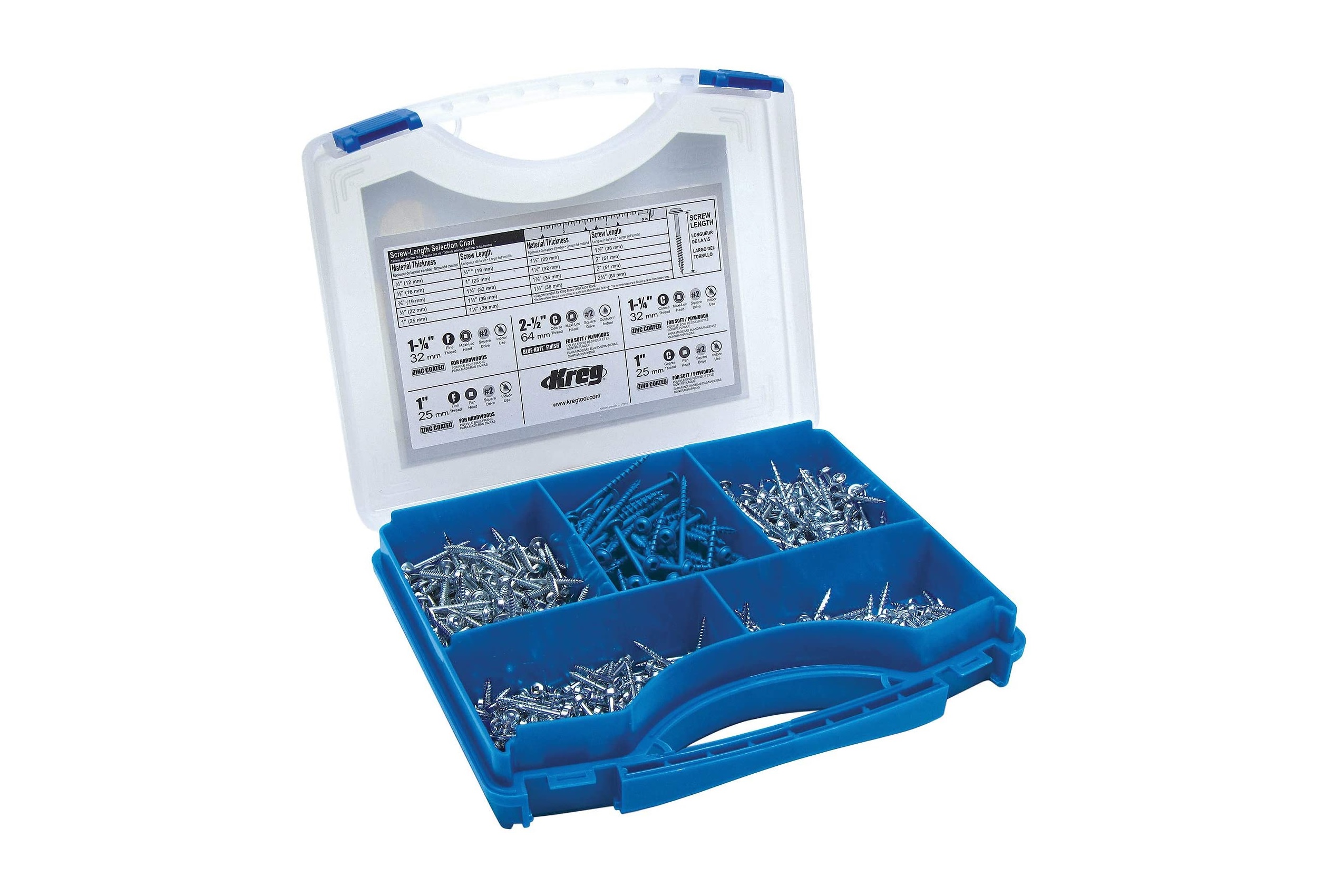 The Kreg SK03 screw kit offers 675 pieces of five of the most commonly used screws in woodworking. To help you keep track of these mini tools, a carrying case is included with your purchase. Each Kreg screw in this set is made with a square drive for easy installation.