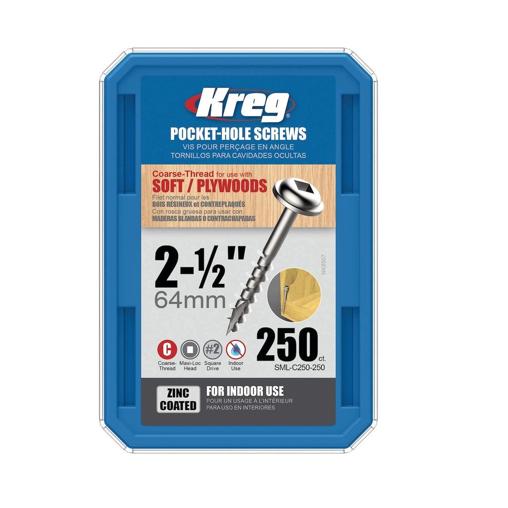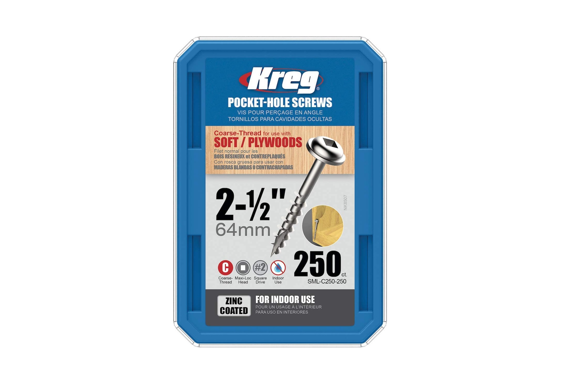 Kreg’s washer-head screw is specifically designed for softwoods and quasi-woods like melamine and pine. The threads (the space between the ridges on the bottom of the screw) are coarse, meaning this Kreg screw provides the best possible holding power for soft materials.