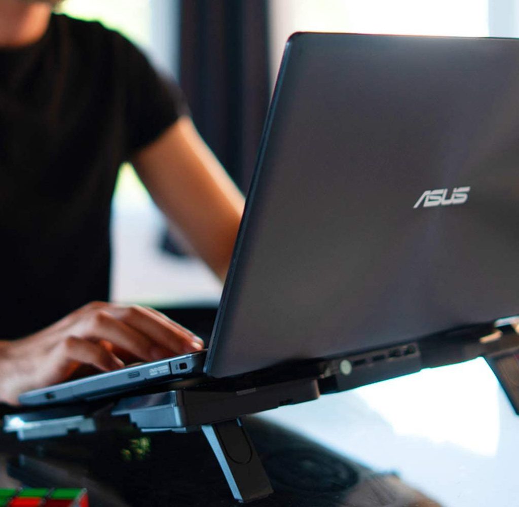 There are two main types of laptop cooling stands. Some are motorized and have fans that run, powered by plugging the fan into your laptop with a USB cable. This can cool down laptops fast and efficiently, but the stands are often large and loud. Alternatively, a cooling stand with a ventilation system is a lightweight option that doesn’t require extra power. However, cooling might take longer.