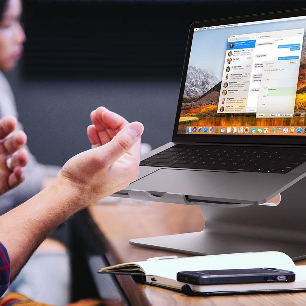 The gorgeous Bestand Laptop Stand combines functionality with style, fitting into any room that wants to have that modern, sleek look to its decor. This stand accommodates laptops from 11 to 16 inches. The most impressive part of this stand is the way that it elevates the laptop to naturally improve airflow underneath. The cable management ring at the back makes it easy for you to stay organized, and the anti-skid silicone pad ensures stability.