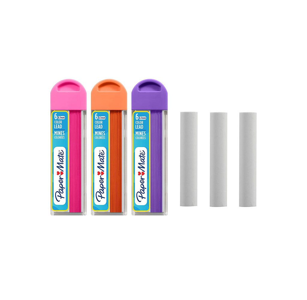 Paper Mate’s Lead and Eraser Refills includes multiple colors of lead refills in coordinating cases as well as three white eraser refills. In fact, there are a few sets of colored lead to choose from. The erasers are gentle on paper. This pack is perfect for people who are bored with the appearance of plain gray pencils. Plus, unlike pens, the lead that is included with these Paper Mate Lead and Eraser Refills can be erased.