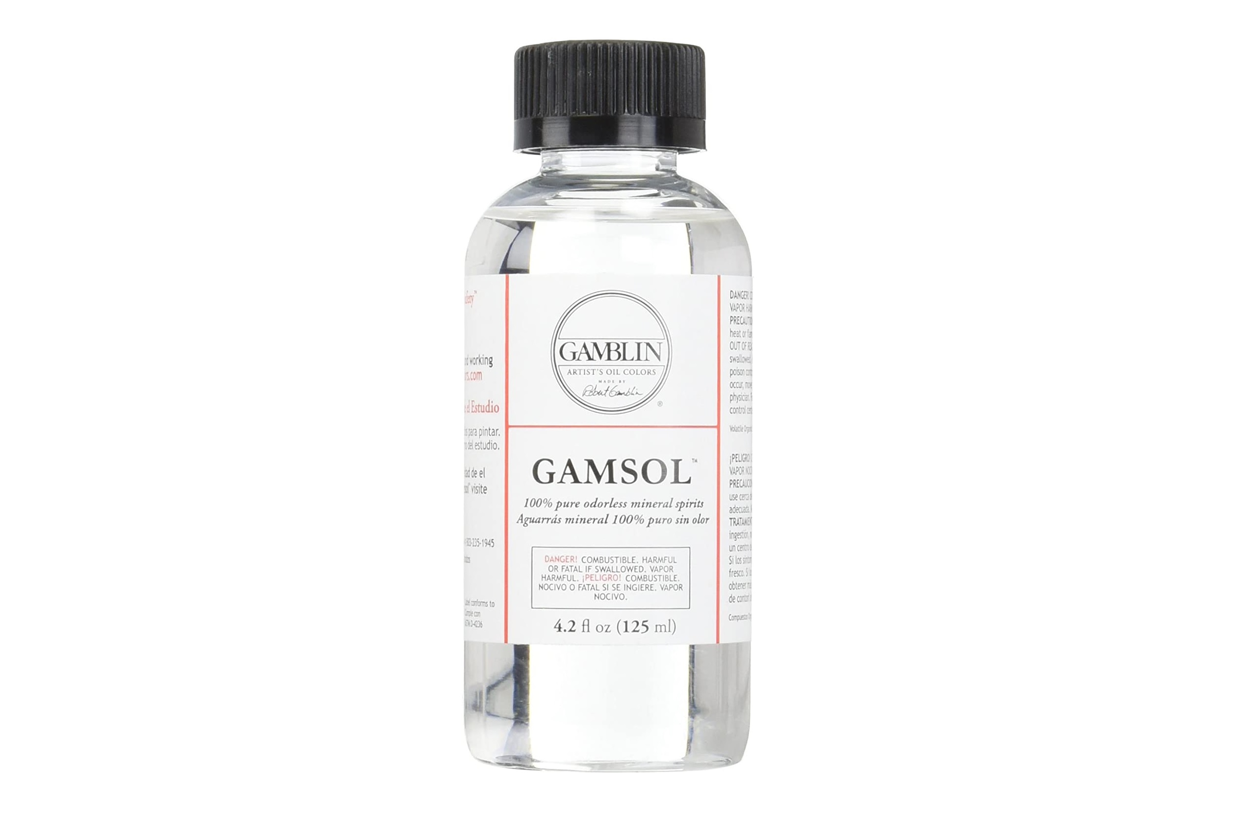The Gamblin Gamsol Odorless Mineral Spirits is a great solvent for the specifically tricky medium of oil paints. Oil mediums may need more work to thin out because of its nature to repel from water, so the bottle contains the strong petroleum distillates you need to thin out the oil paints and get your brush clean again. The mineral mix will clean your brushes quickly and can also be used as a blending medium for things like watercolors.