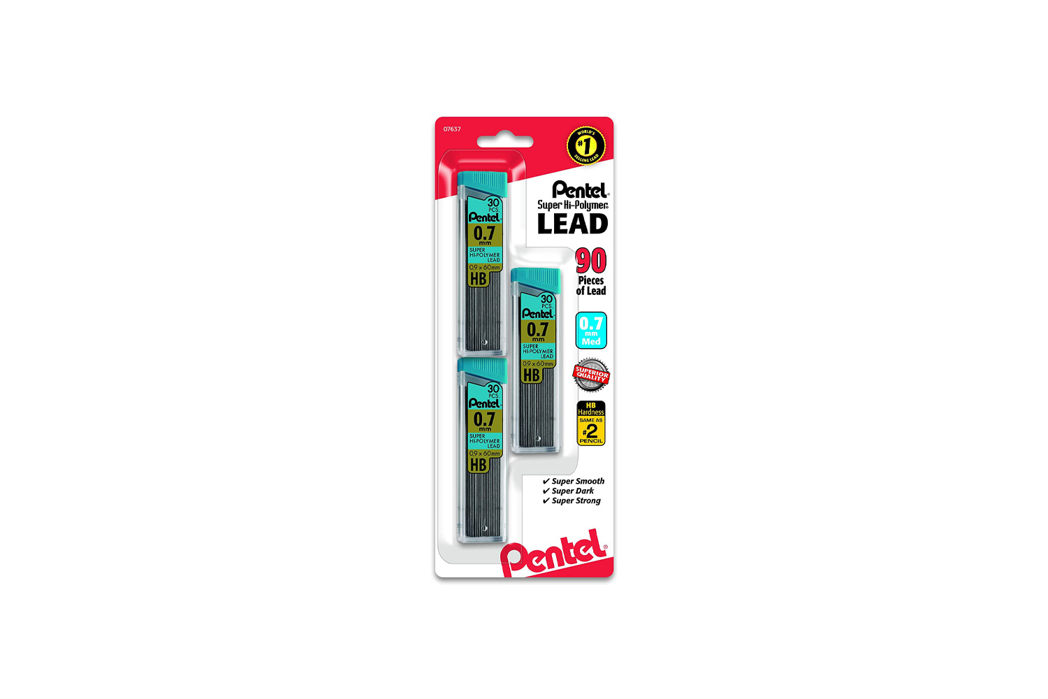 Pentel is the world’s No. 1 lead because it resists breaking and never needs sharpening. It is equivalent to a No. 2 pencil and is guaranteed to scan on tests, while producing a clear and dark line on paper. This pack contains three 30-piece Pentel dispensers that are all made of 100-percent recycled plastic.