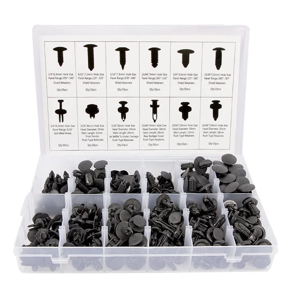 It can be difficult to keep track of all of those plastic rivets, and when they are all the same color, it is even more important to find ways to separate them by size and type, so you will know exactly what you have. The SunplusTrade Push Type Retainer Clips give you that compartmentalized box for each retainer kit to stay organized. It also comes with a cheat sheet that will let you know about the rivet size and type.