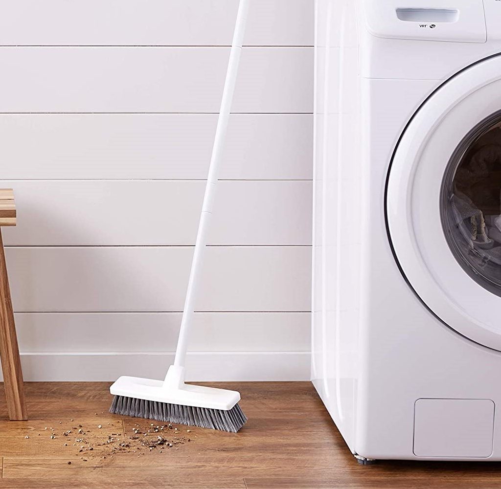 When the surfaces you’re sweeping are rough, get a push broom that’s exceptionally tough. The AmazonBasics Angled Push Broom can stand up well to rough surfaces. Its strong and extra-stiff plastic bristles are engineered to prevent weakening or breaking during tough cleaning jobs. The durable, angled push broom is suited for indoor, outdoor or industrial uses. Its three-piece interlocking handle can break down for easier storage or for a custom height adjustment.