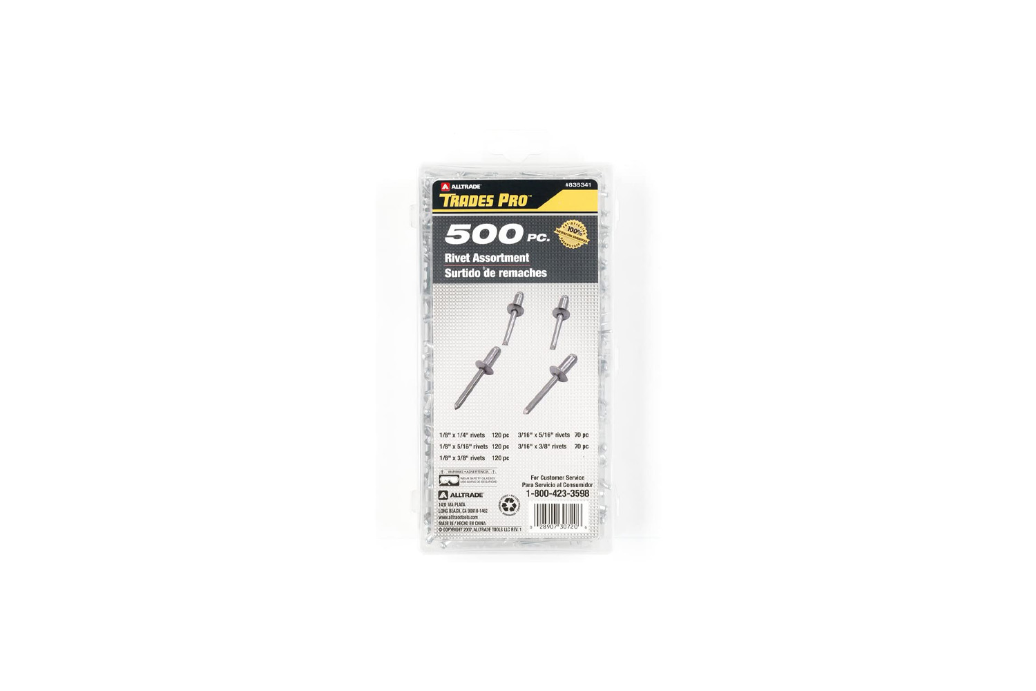 The Tradespro Aluminum Rivet Assortment is a great value to get an array of rivets without going through the trouble of getting each size individually. All of the rivets are made of aluminum, which makes it a lightweight rivet while still holding up with its integrity. The storage case keeps all of the rivets organized and clean, so you can tuck it away and pull it out whenever you need it to find the perfect rivet you need. You can use this at any time around the home or when you are on your worksite.