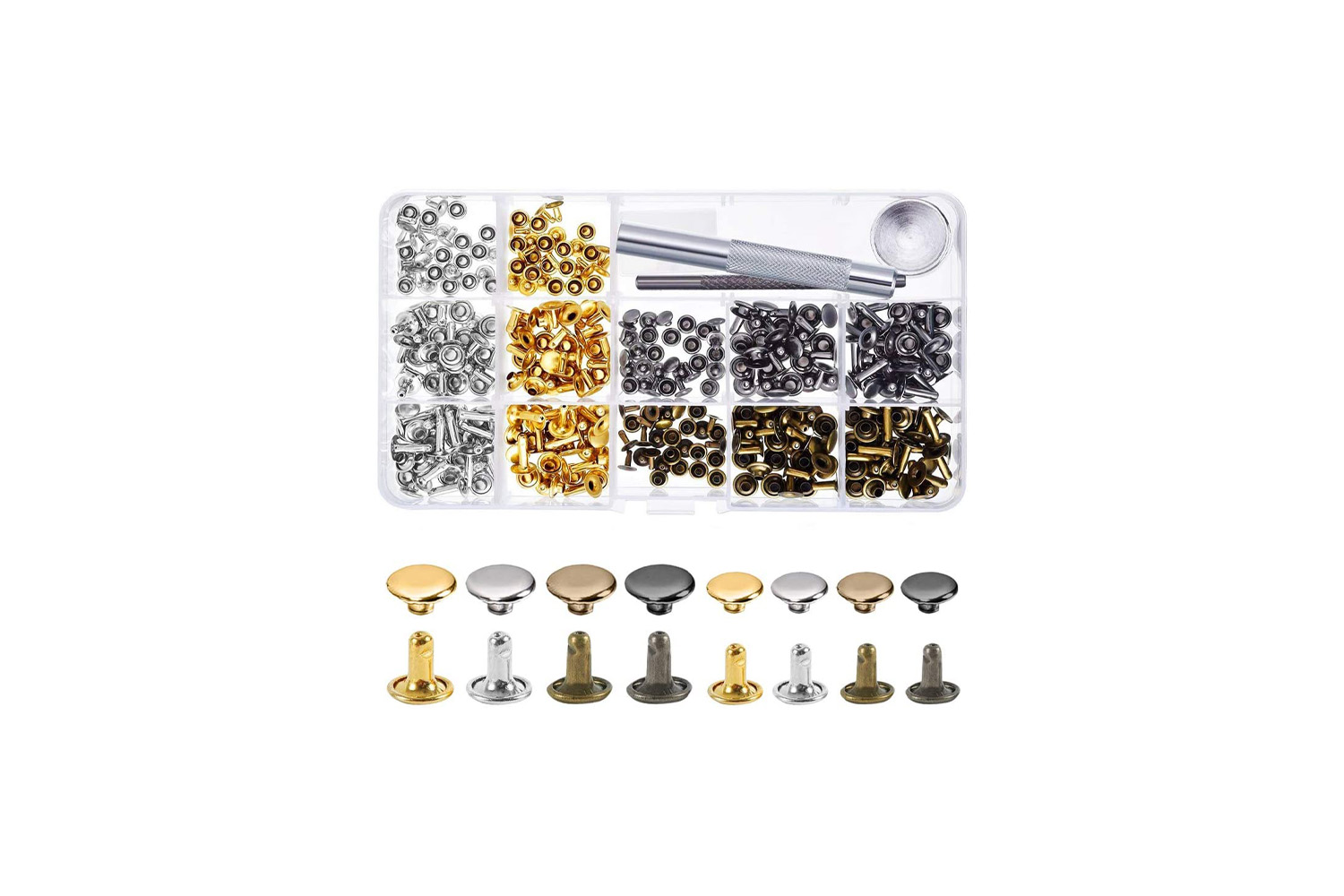You may sometimes just need all types of rivets to get the job done. Why go through the trouble of going through multiple channels to fulfill that tall order when you can just grab yourself the Alritz Rivets? These double-capped rivets come in sets that differ in sizes and colors, so you can find the rivet that will not only get the job done but one that will fit the style and aesthetic of the project. The rivets make it easy to attach with a practical setting tool.