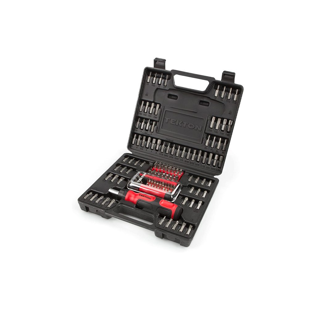 TEKTON’s 135-piece set gives you everything you need, screwdrivers and beyond. This is an excellent kit for beginners to professionals, and it is designed for users who don’t have a lot of tools already. Quality pieces with comfort grips ensure smooth and accurate use, while a hardshell case and molded slots keep everything in place. Plus, there are even sizes for small electronics repairs.