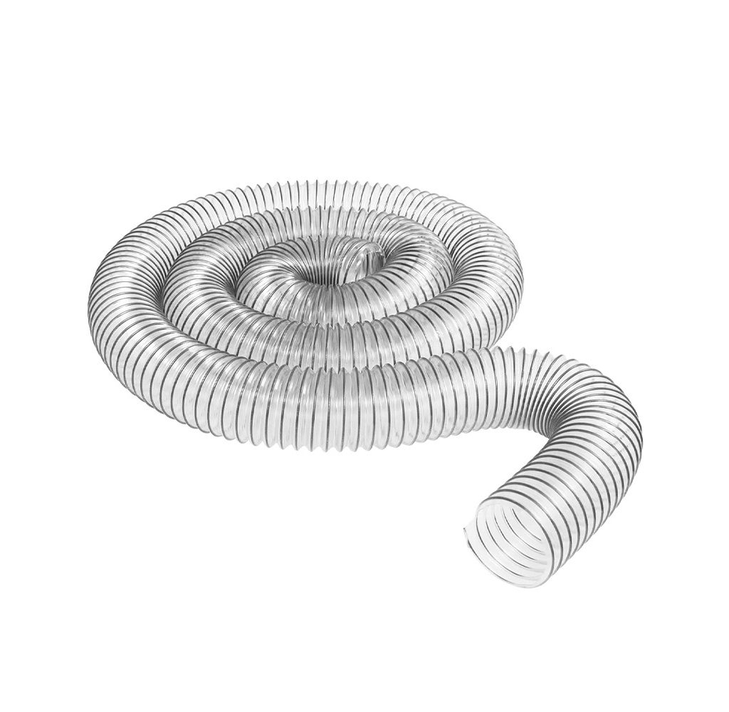 Peachtree’s clear, collapsible hose is made of reinforced PVC and a wire helix for added structure. This American-made hose makes it easy to clean up inside woodworking shops or other indoor workspaces.