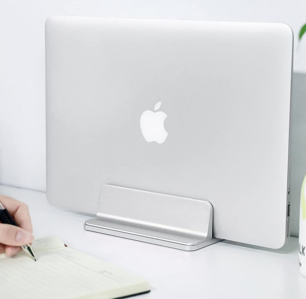 Vertical laptop stands can be helpful to those who need an organization method for their devices. A laptop can take up a lot of space on a desk, so it is important to keep it tucked away when not in use. When vertical, you can slip the laptop into comfier spots. Making room for your other tasks cannot get much easier than that.