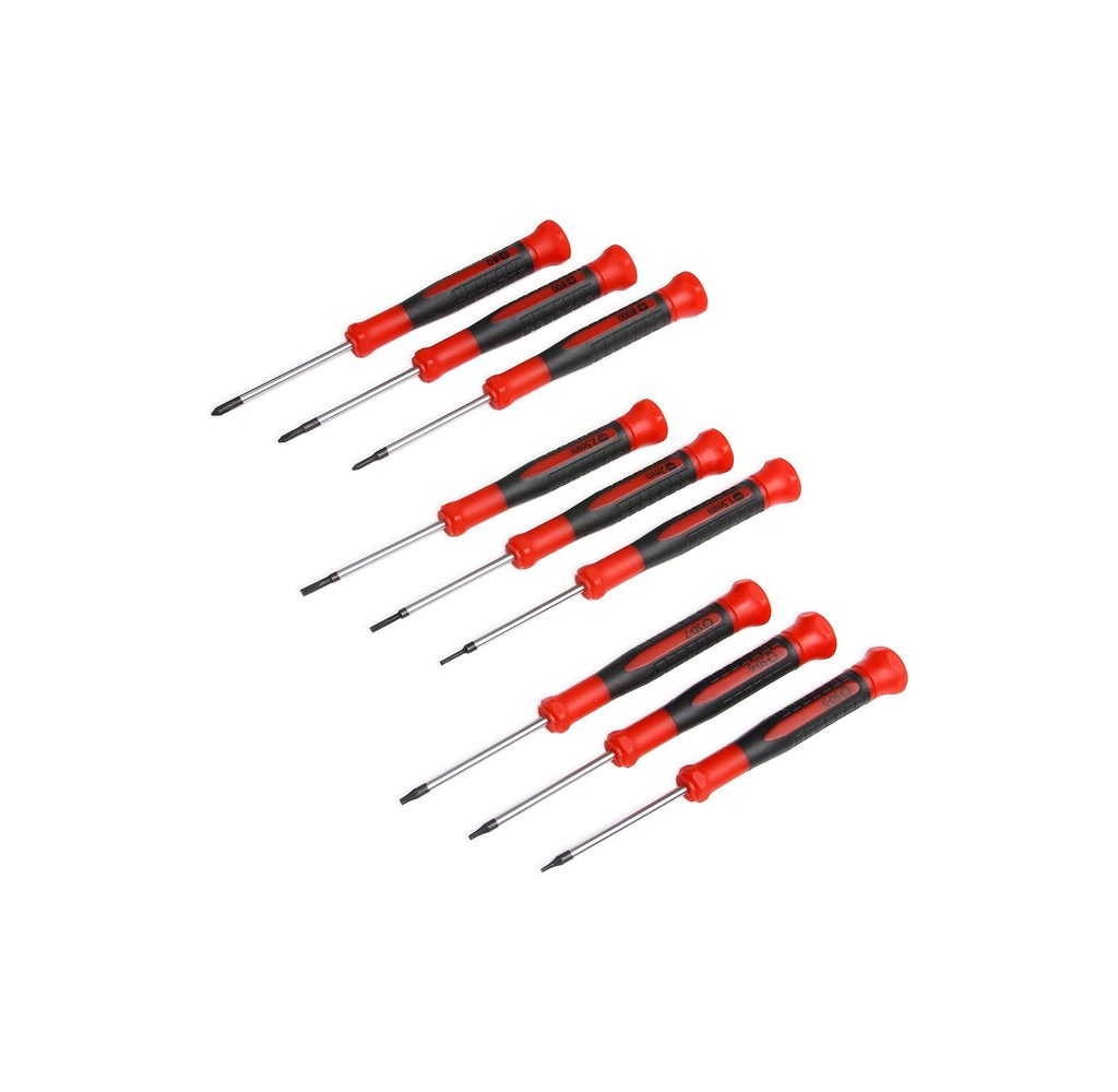 EFFICERE ‘s precision screwdriver set includes the pieces you need to handle a variety of small jobs. The screwdrivers feature ultragrip handles with rust-resistant chrome finishes on the bits, giving you lightweight yet durable screwdrivers. The set includes nine different pieces and swivel end caps for constant finger pressure.